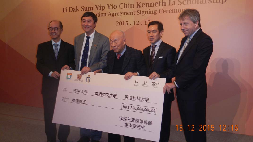2015-12-15 | Li Dak Sum Yip Yio Chin Kenneth Li Scholarship Donation Agreement Signing Ceremony 李達三葉耀珍伉儷李本俊獎學金捐款協儀書簽署儀式